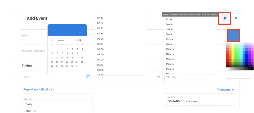 - Prenotazione consapevole del fuso orario: Gli eventi del calendario si adattano automaticamente al fuso orario di ciascun cliente in base alle impostazioni della loro app — essenziale per il coaching online